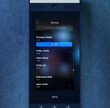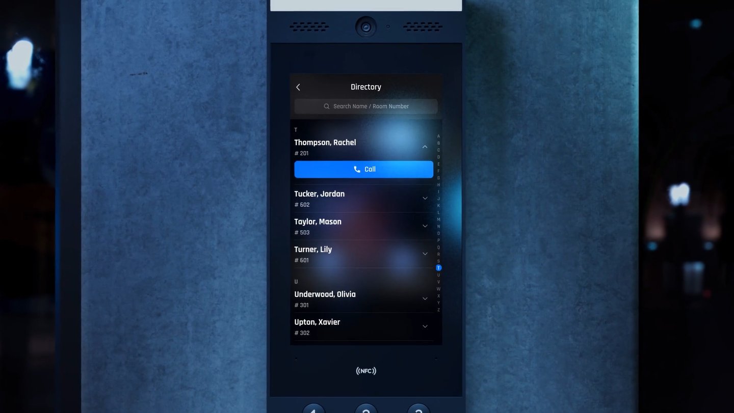 Display that works with Intercom and Reader Pro for visitor screening and remote access control.