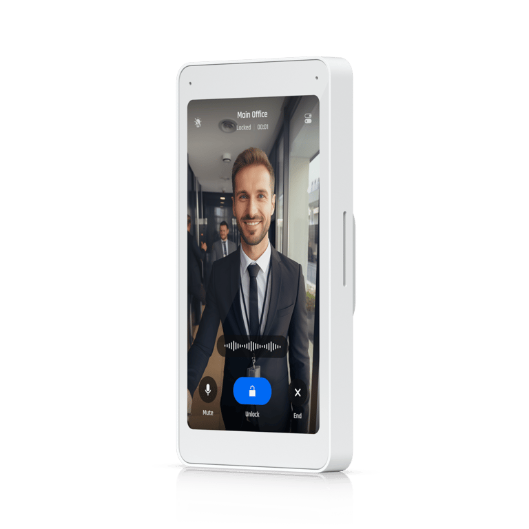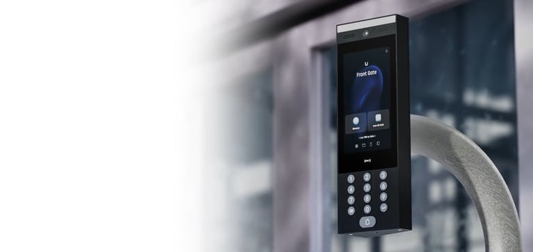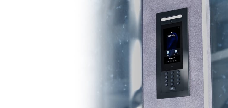 An intelligent door entry system with native UniFi Protect and UniFi Access integration.