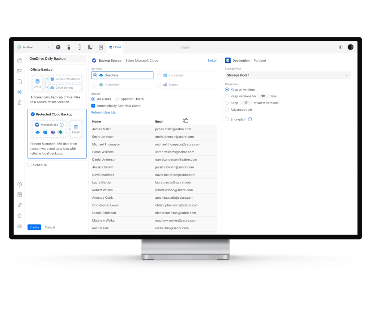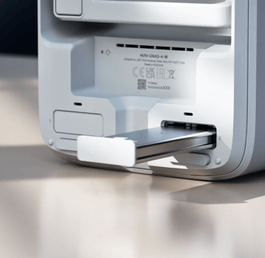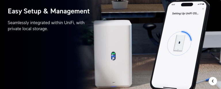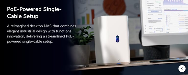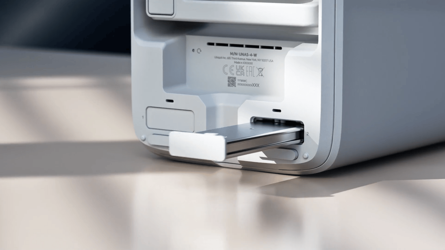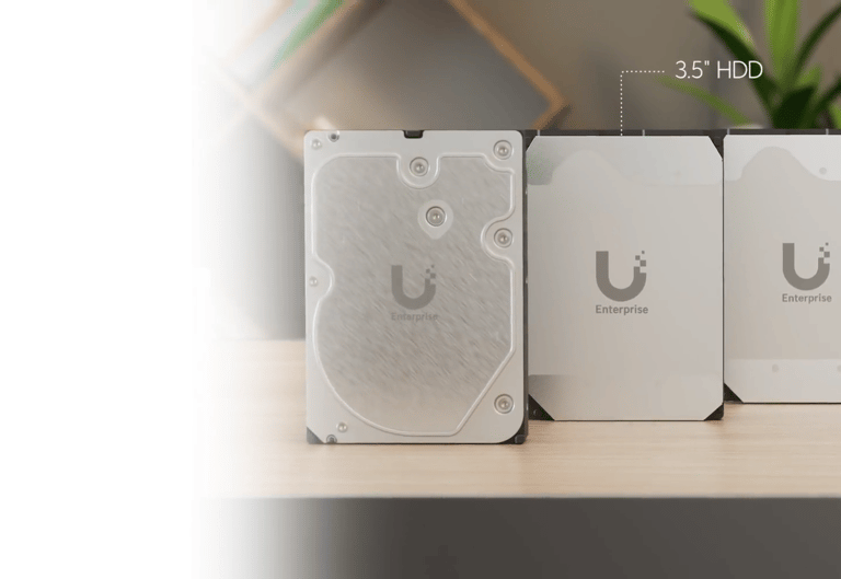 UniFi Network Attached Storage with (4) 2.5/3.5" HDD bays, (2) M.2 NVMe SSD cache slots....