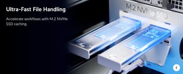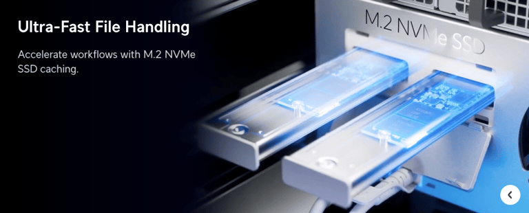 2U rack-mount NAS with (8) 2.5/3.5" HDD bays and (2) M.2 NVMe SSD cache slots, delivering faster access....