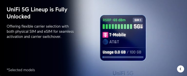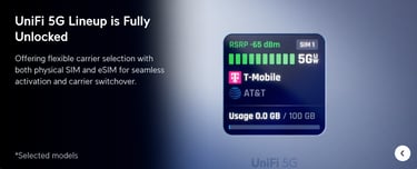 A full-performance 5G (3.4 Gbps) modem for UniFi consoles and Cloud Gateways, certified with AT&T, T-Mobile*.....