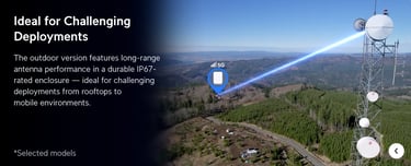 Compact, ruggedized, and carrier unlocked LTE Cat 4 mobile WiFi router designed for indoor/outdoor IoT applications.