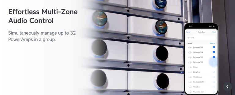 Premium speaker amplifier designed for high-fidelity multi‑zone audio streaming and immersive spatial sound experiences.
