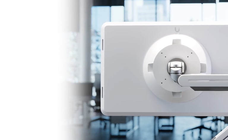 Arm Mount for UniFi Connect Display. 360° display rotation axis and a wide tilt range. Locking safety latches for secure assembly. Magnetic connectors for snap-on installation, and cable management kit.
