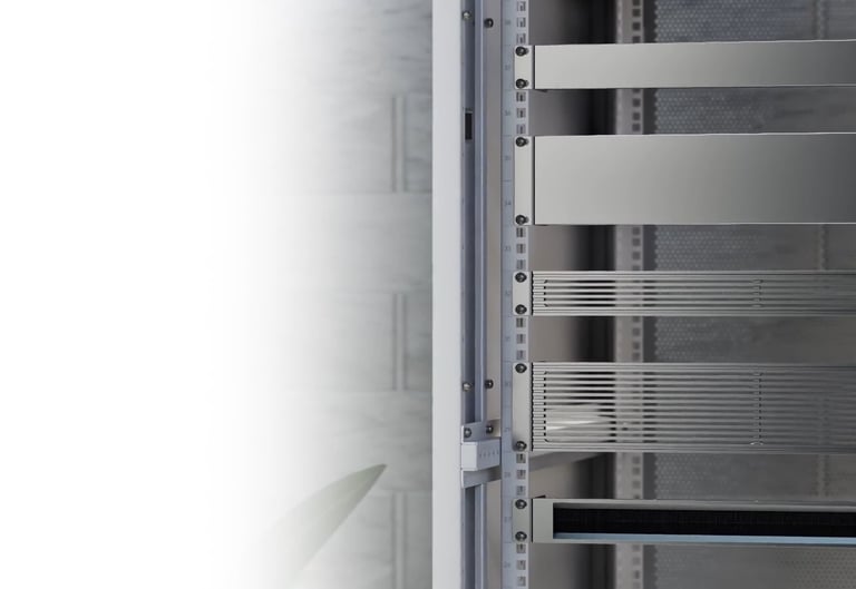 Standalone insert that can be easily installed into an existing network equipment rack to create a clean, uniform aesthetic.