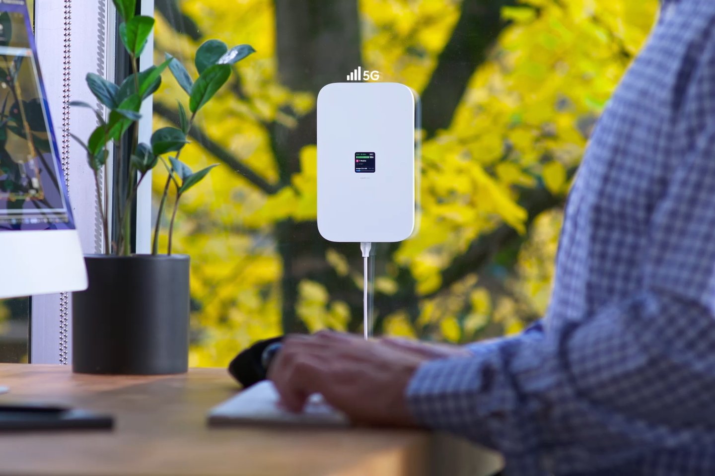 The UniFi 5G Max makes deployment easy, whether installed locally or at a remote site. Plug it into any PoE port and it instantly appears as a ready to use WAN interface, no matter whether plugged directly into your UniFi gateway or into your office switch. No new cable runs needed! It sits neatly on a desk, but you can reposition it for the best possible signal using the included wall or window mount.
